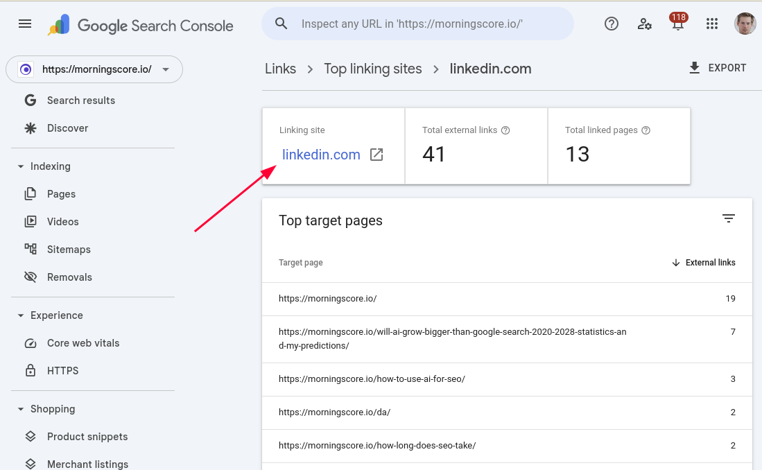 - Click on “Top linking sites”