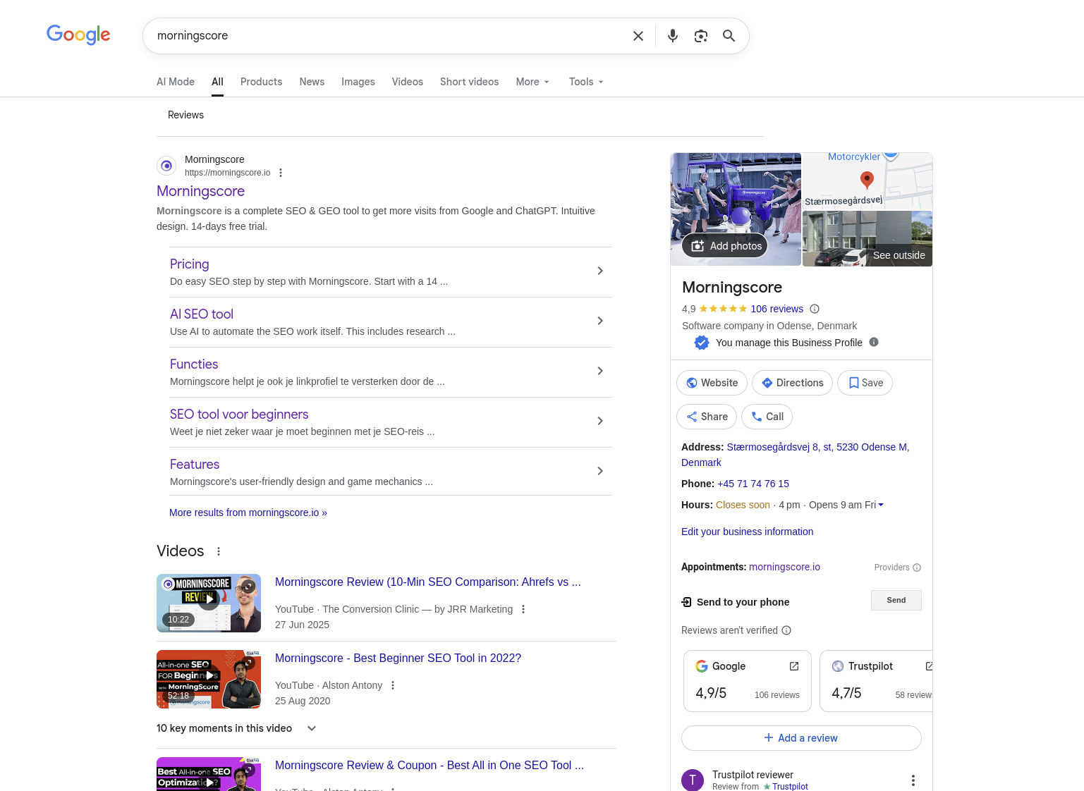 So in my case it would be site:morningscore.io and then I look through at least the first 100 results (10 pages on Google) and see if I can find any outdated pages just by looking through their title and meta descriptions displayed on Google.