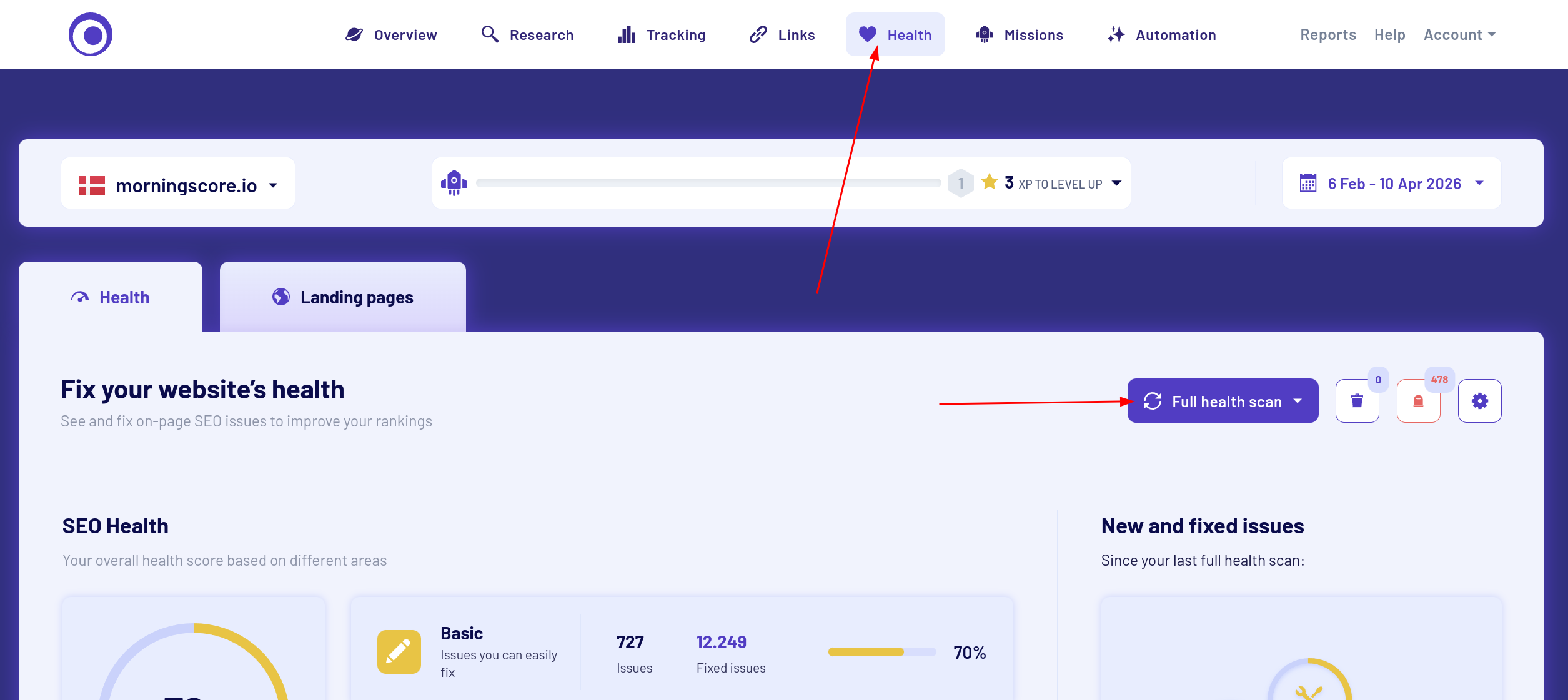 Our Health tool (for onsite SEO) is now running on a brand-new engine. In practice, that means you’ll get more accurate insights and uncover issues that were previously harder to detect.