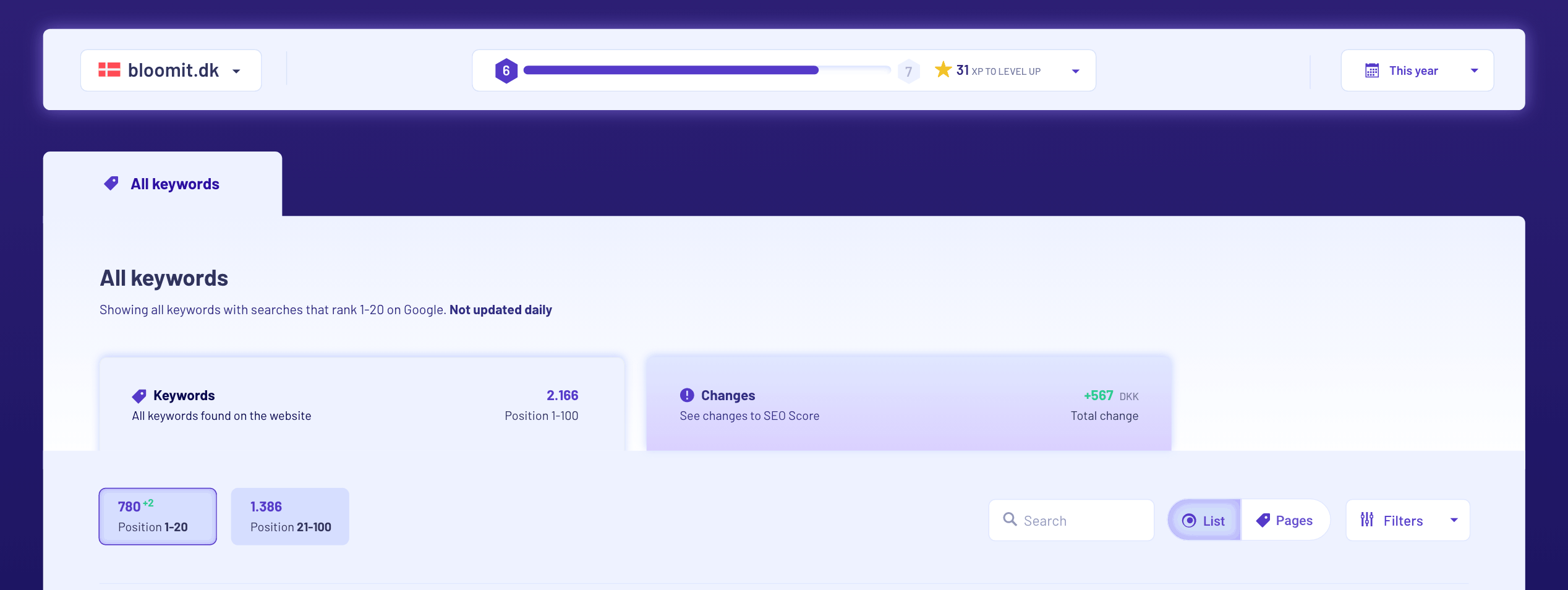 - Allow you to see positoin 21-100 for all keywords found for your website on Google (before you could only see 1-20):